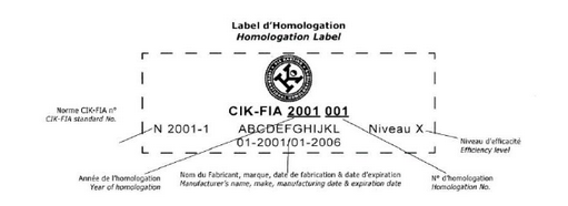 NOTE: CIK-FIA Homologations for Standard N2001-1 all expired on 31-12-2016 therefore any suit showing N2001-1 with a manufacturing date later than 31-12-2016 is incorrectly labelled and illegal to use.
